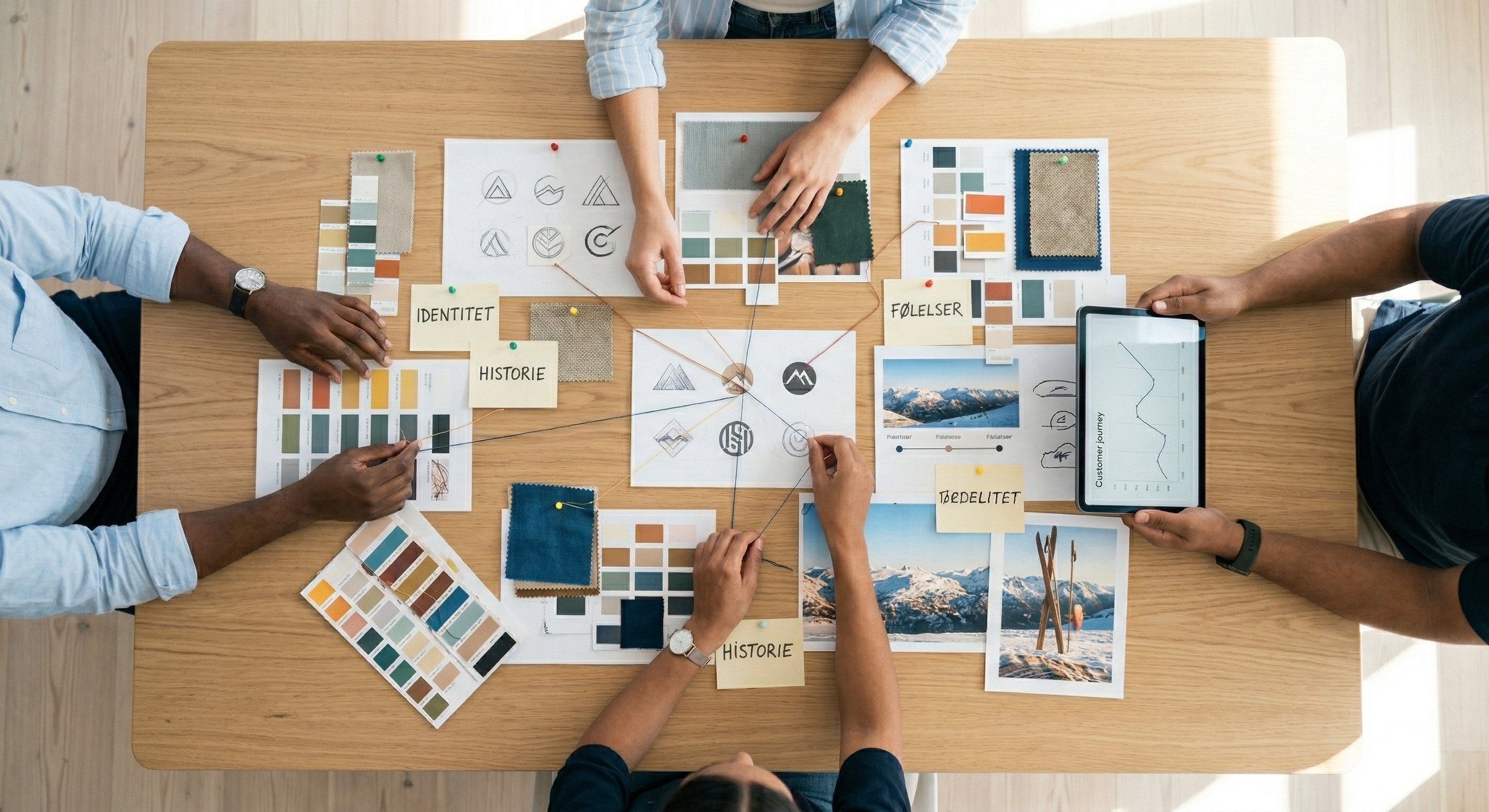 Alt som gjør at kunden velger deg – selv når prisen er høyere.Et godt eksempel er produkter som forbindes med bestemte situasjoner, som Kvikk Lunsj og Solo – merkevarer mange nordmenn forbinder med tur, påske og skikos. Når et produkt blir en del av slike positive øyeblikk, er det ikke lenger bare et produkt, men en naturlig del av en opplevelse. Tur, påske og ski er faste aktiviteter i mange nordmenns kalender. Hva er vel smartere enn å utvikle produkter som folk aktivt ønsker å ha med seg i nettopp disse øyeblikkene?Bildet visualiserer planleggingsfasen, historiefortellingen og byggingen av identitet, akkurat slik artikkelen beskriver.